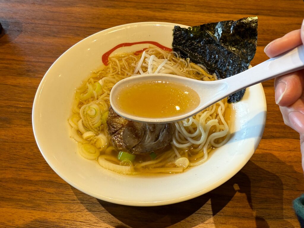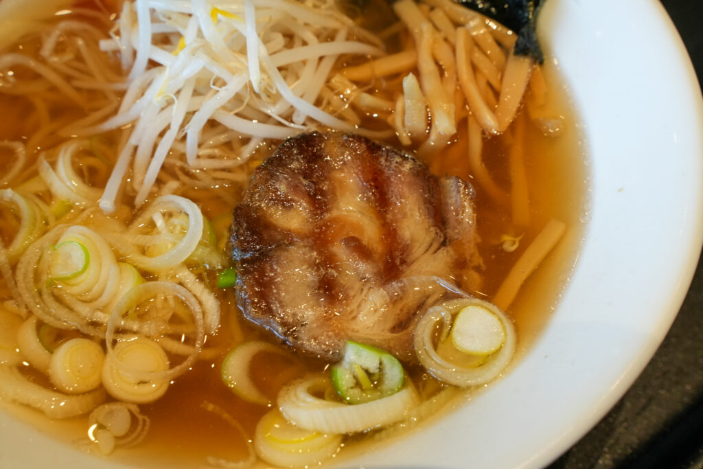 琴浦町の老舗醤油店の「白醤油(薄口)」を使っていて、見た目は想像する醤油ラーメンより淡い色。