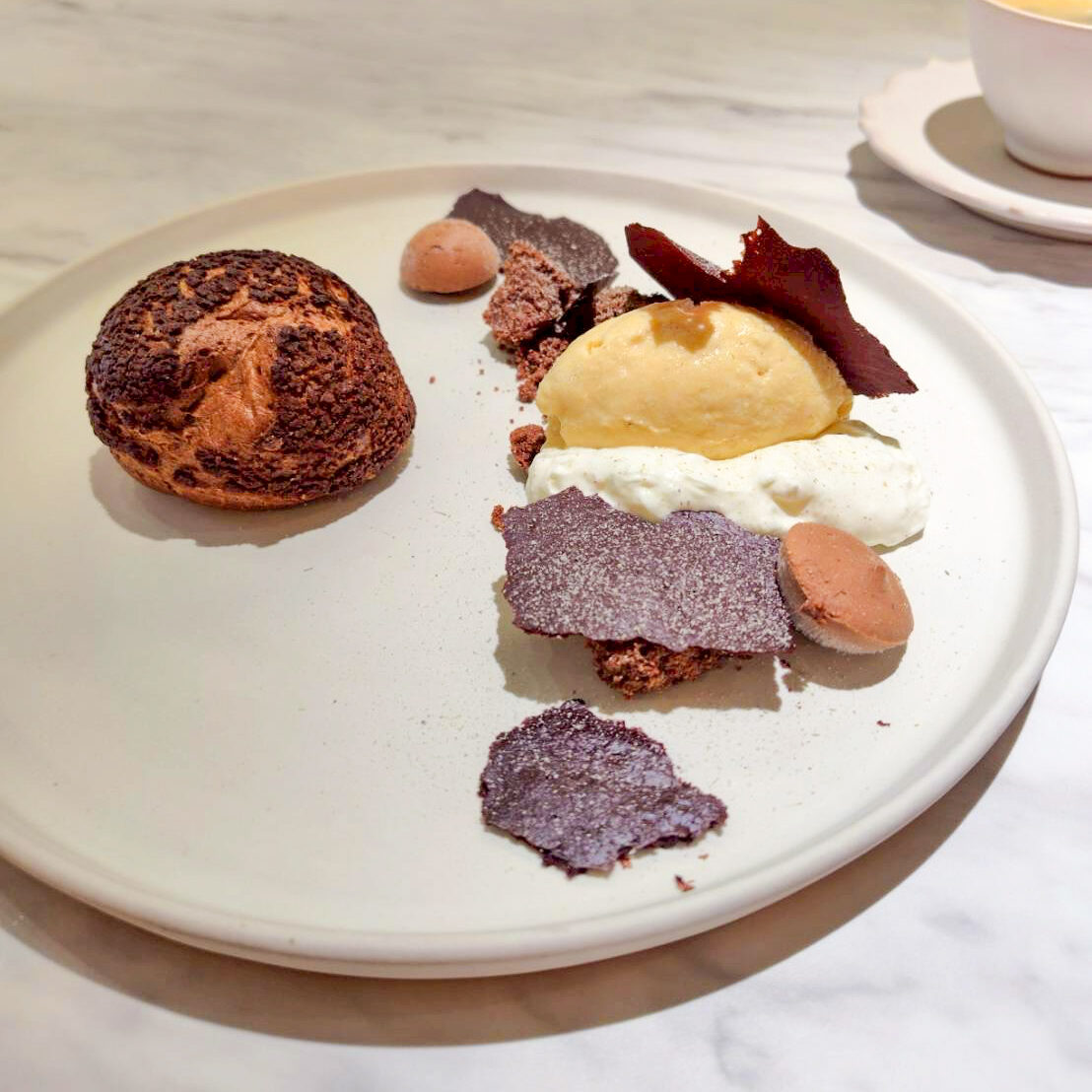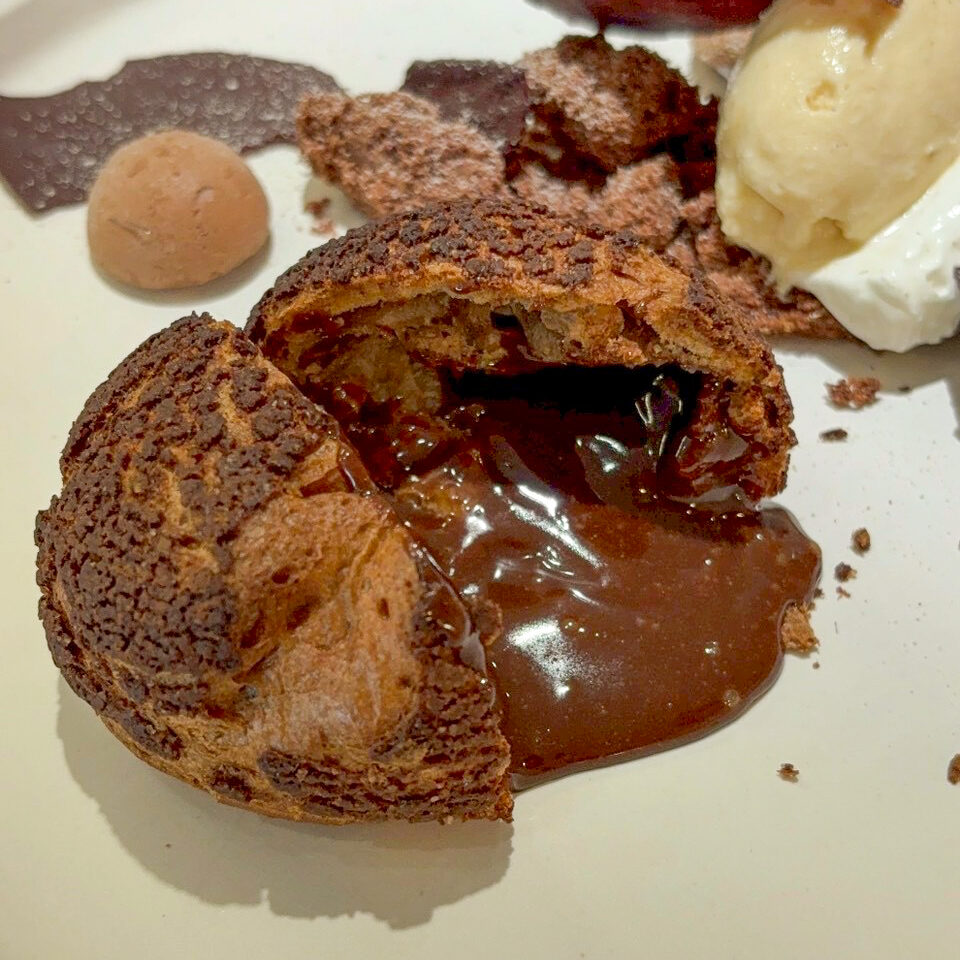 シュー生地に包んだフォンダンショコラと有機ラベンダー(1800円/定番メニュー)。