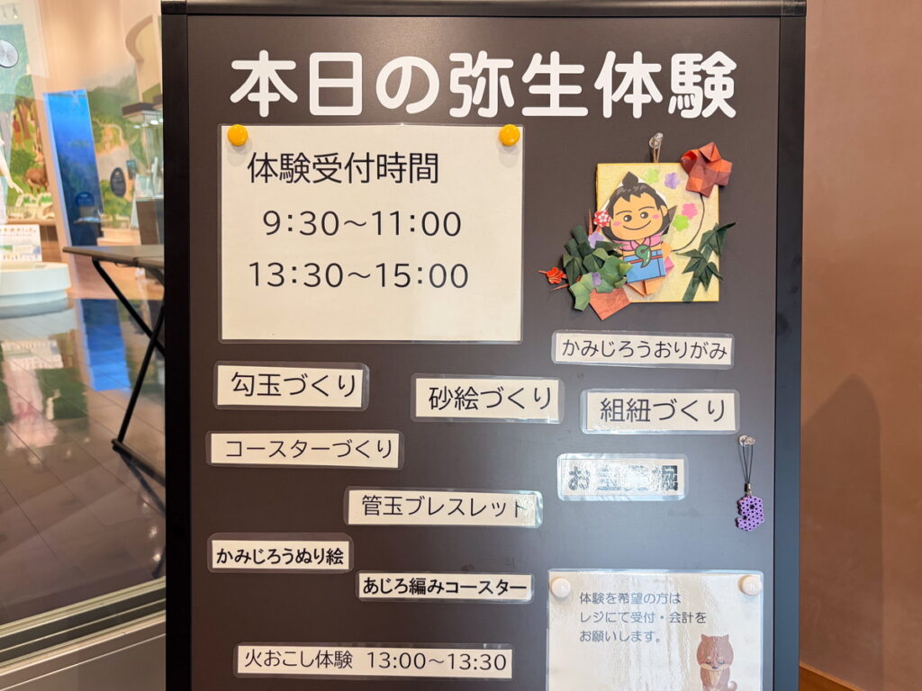弥生時代を味わえるものづくり体験ができます。受付時間にご注意ください。