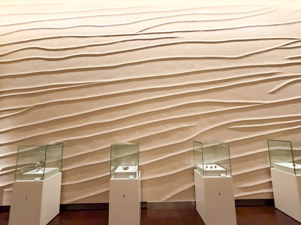 青谷町にある井手ヶ浜(いでがはま)「鳴り砂の浜」をイメージした壁紙。壁に描かれた砂紋を目で追い続けていると”きゅきゅ”と鳴り砂の浜を歩いた時のように音が聞こえてきそうな気がします。