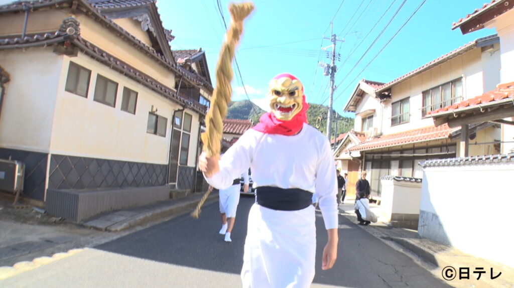 白装束に鬼の面をつけた「ガッチ」たちが、藁で作られた「シッポ」で地面や人を叩き、清めるこの祭り・・・ガッチは無病息災を願い、暴れまわります!