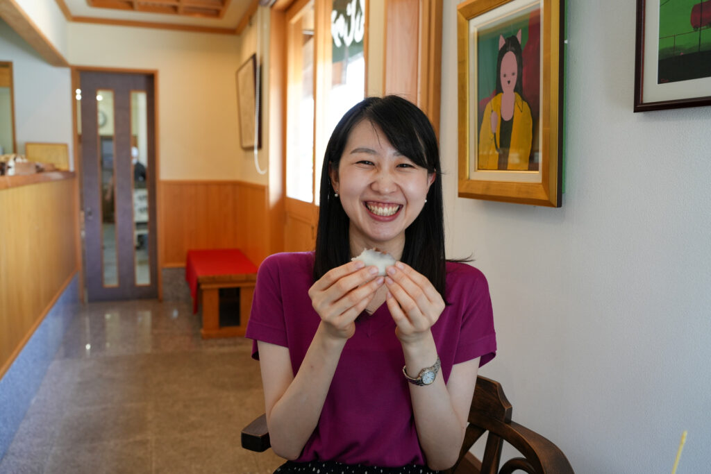 ひとくち食べた瞬間…この表情!「今まで食べたおまんじゅうの中で1番おいしい!」と絶賛でした。