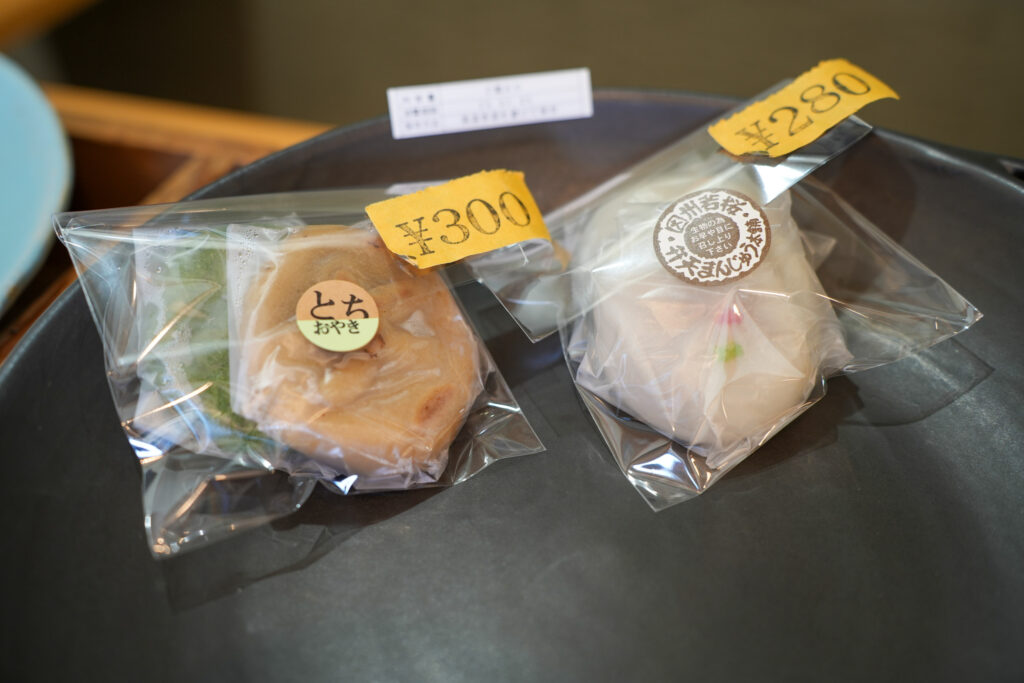店内には弁天まんじゅうのほか、「よもぎ」や「とち」のおやきも並んでいます。