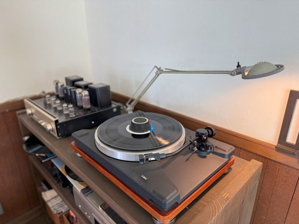 真っ先に目に飛び込んできたのは、存在感のあるレコードプレーヤー。