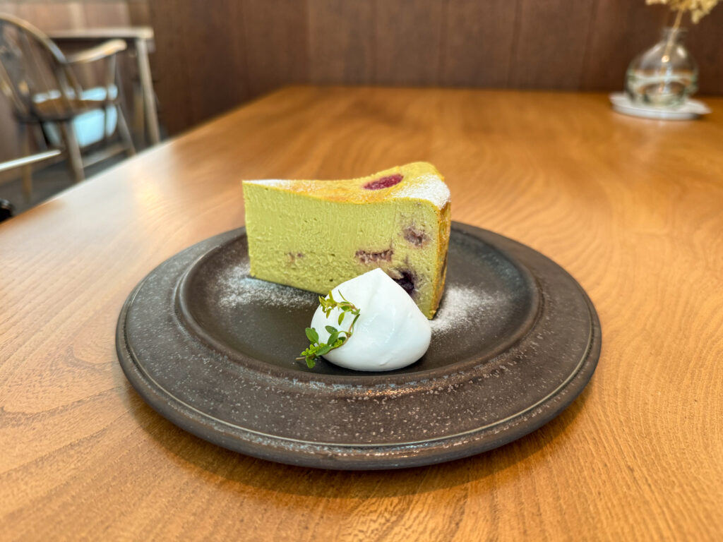 ピスタチオのナッティーなコクがしっかりと感じられる、とっても濃厚なチーズケーキです。