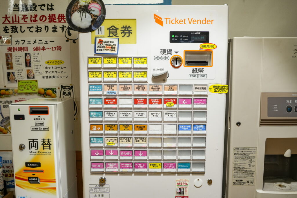 レストラン入口の券売機で、食券を買い、カウンターで渡すと注文できます。