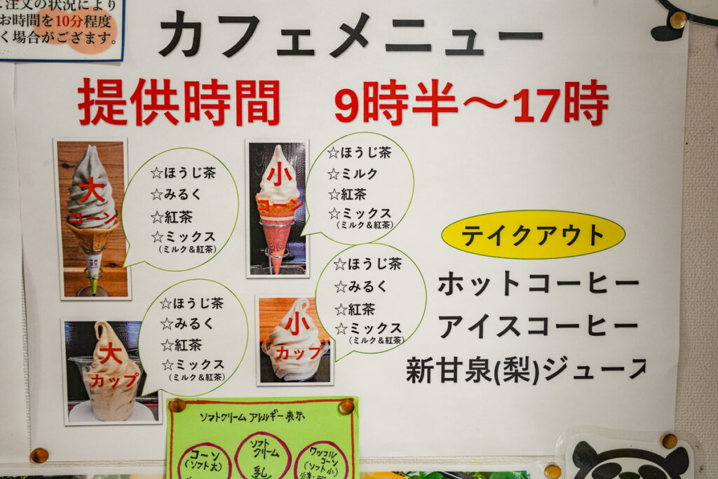 濃厚なミルクソフトやサッパリと味わえるほうじ茶ソフト(こちらも陣構茶が使われています)も、どれもおすすめです!とのことです。