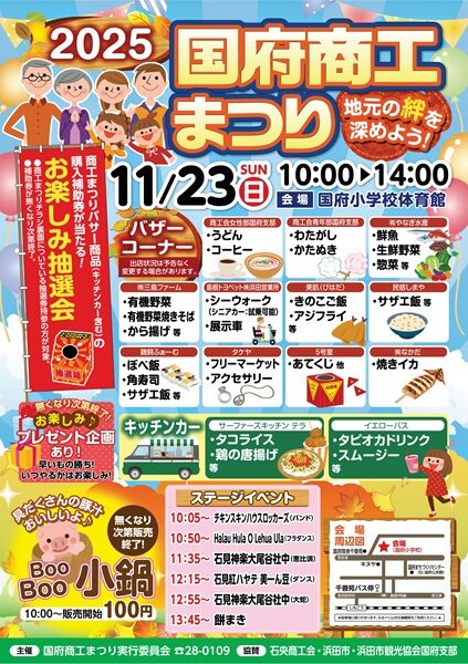 各施設で配布されているイベントのチラシをお持ちいただくと、キッチンカー・バザーの補助券があたる抽選会も開催されます。オトクにグルメを楽しむチャンス!