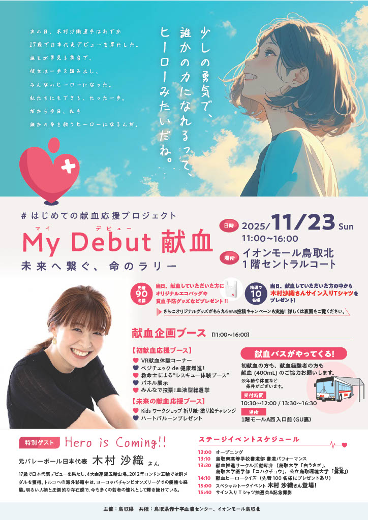 My Debut 献血 未来へ繋ぐ、命のラリー(鳥取市)