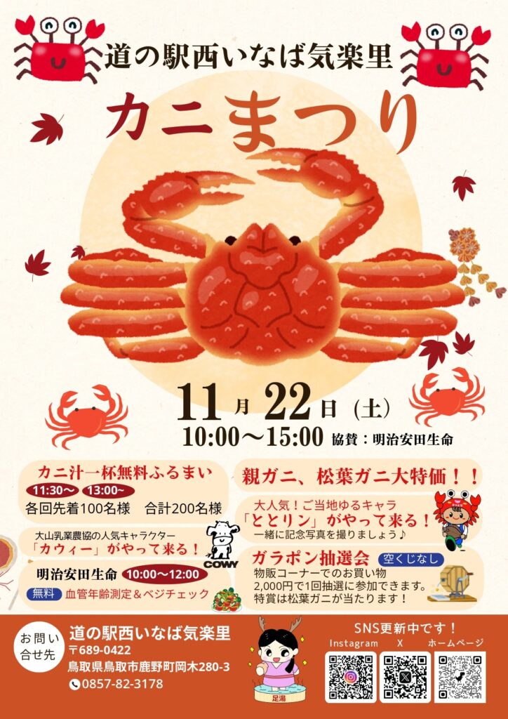 道の駅西いなば気楽里で「カニまつり」を開催します!