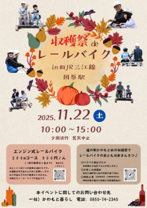 また、同日開催の道の駅かわもと収穫祭ではお楽しみ抽選会や神楽の上演、限定プレゼントなど盛りだくさん! 野菜やお米、そして風景など、秋の恵みをぜひご堪能下さい!