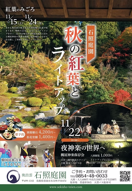 石照庭園秋の紅葉とライトアップ(雲南市)