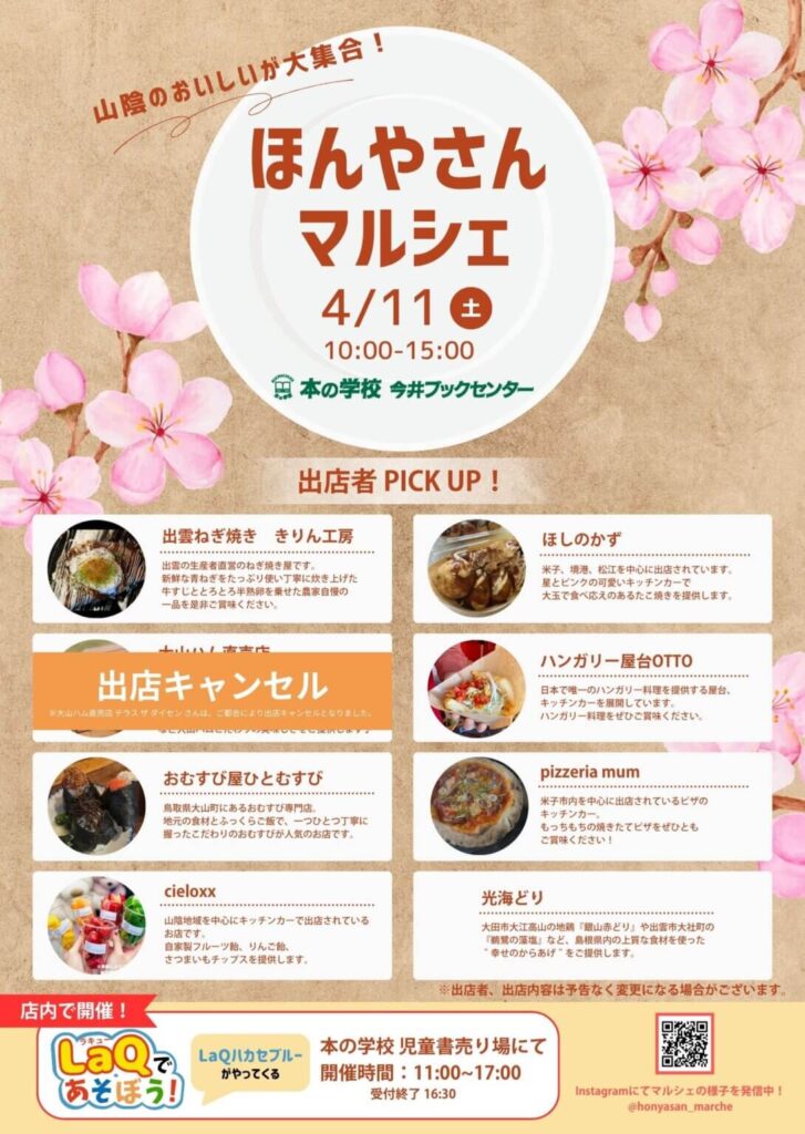 今井書店主催のマルシェイベント「ほんやさんマルシェ」。地元の美味しいものが大集合します!!