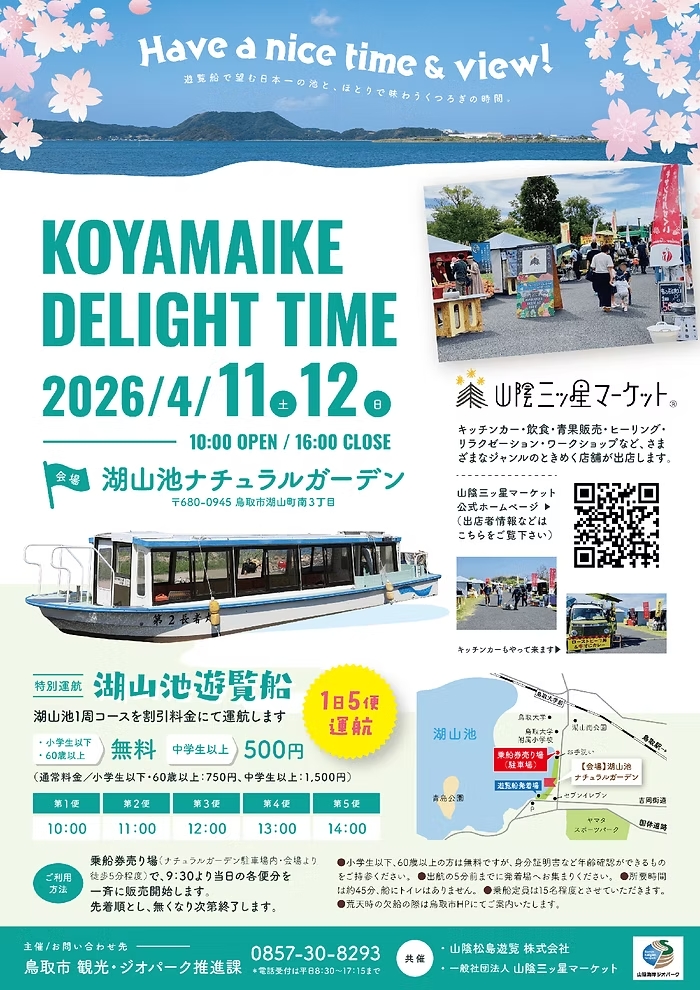また、イベント期間中は湖山池遊覧船が特別価格に!!この機会に普段は体験できない遊覧船に乗ってみましょう♪