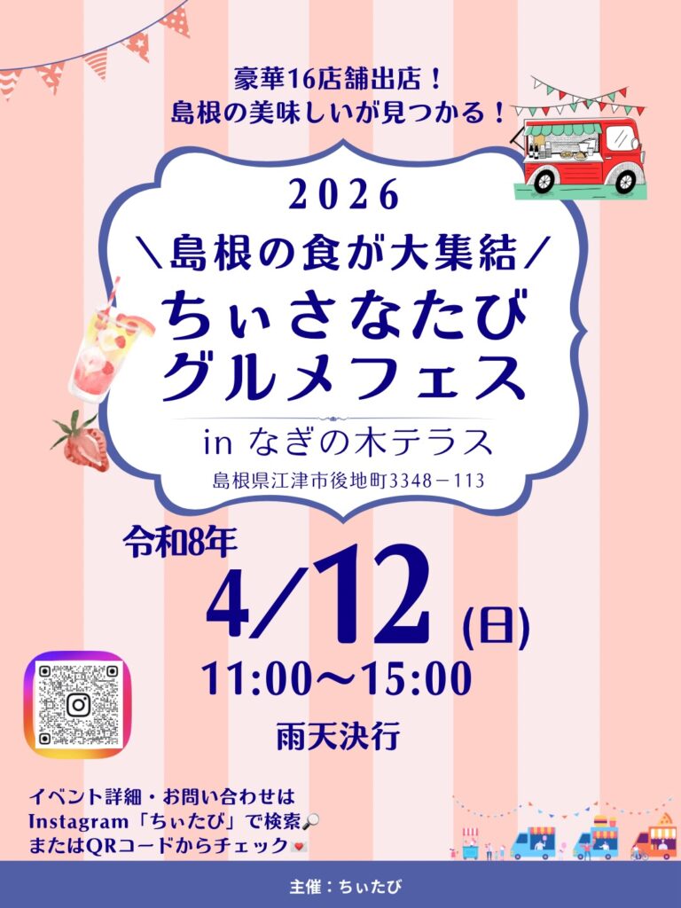 横に長い島根をちぃさなたびをするように1日でいろんな美味しいに出会える限定グルメフェスです!