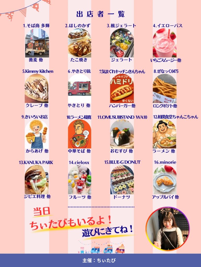 当日は様々なキッチンカーやワークショップがやってきます!美味しいもの・楽しいものがたくさん体験できるかも?