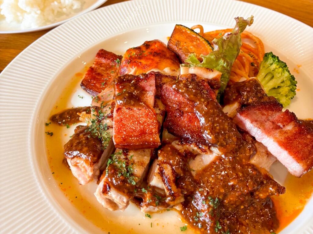 若鶏と出雲ベーコンのグリル粒マスタードソース