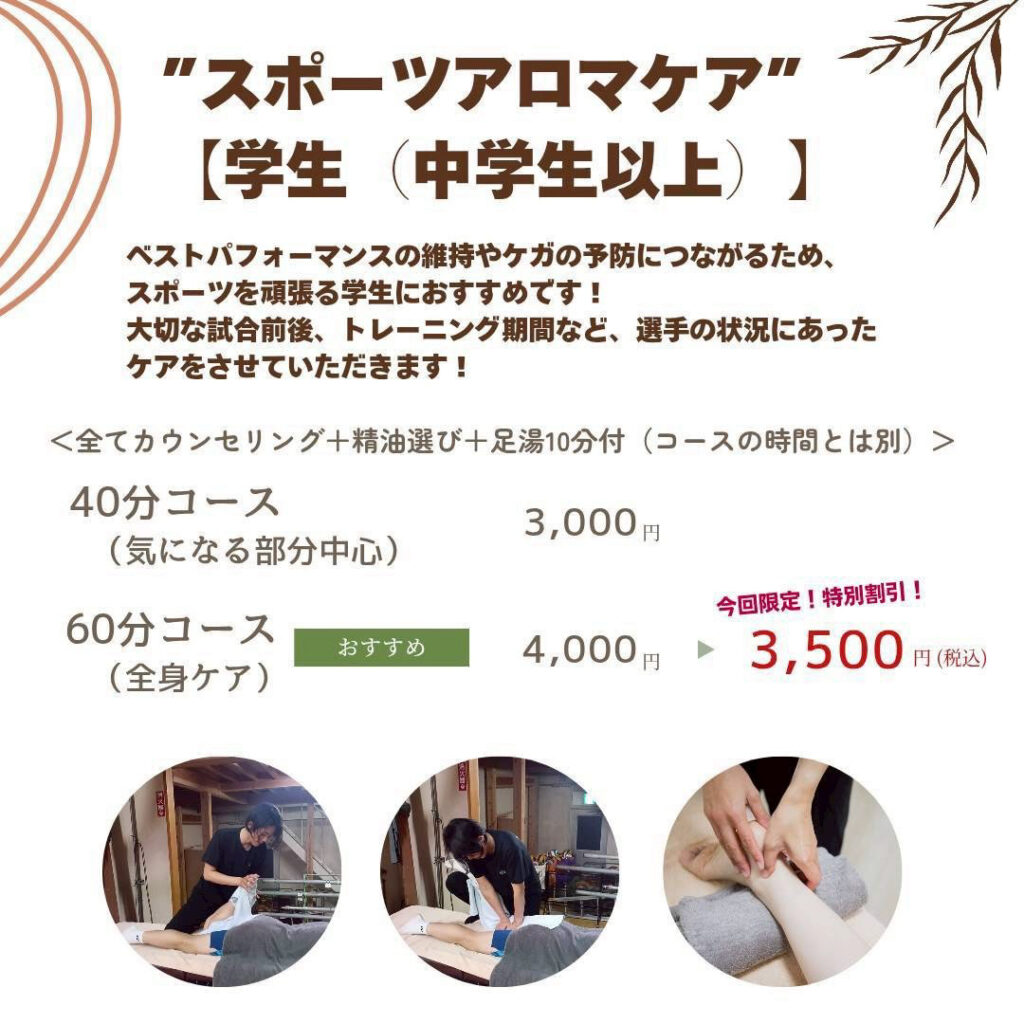 FUTABAYAさんでは、中高生など“スポーツを頑張る学生さん向け”のケアも大人気!