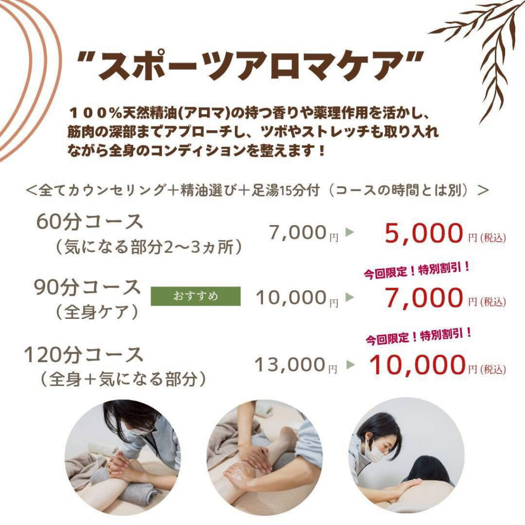 スポーツと書いてありますが、アスリートだけでなく、身体が疲れた時やここぞという時など、スポーツ選手から一般の方まで幅広い年齢の方に気軽に受けていただけるとのことです☆