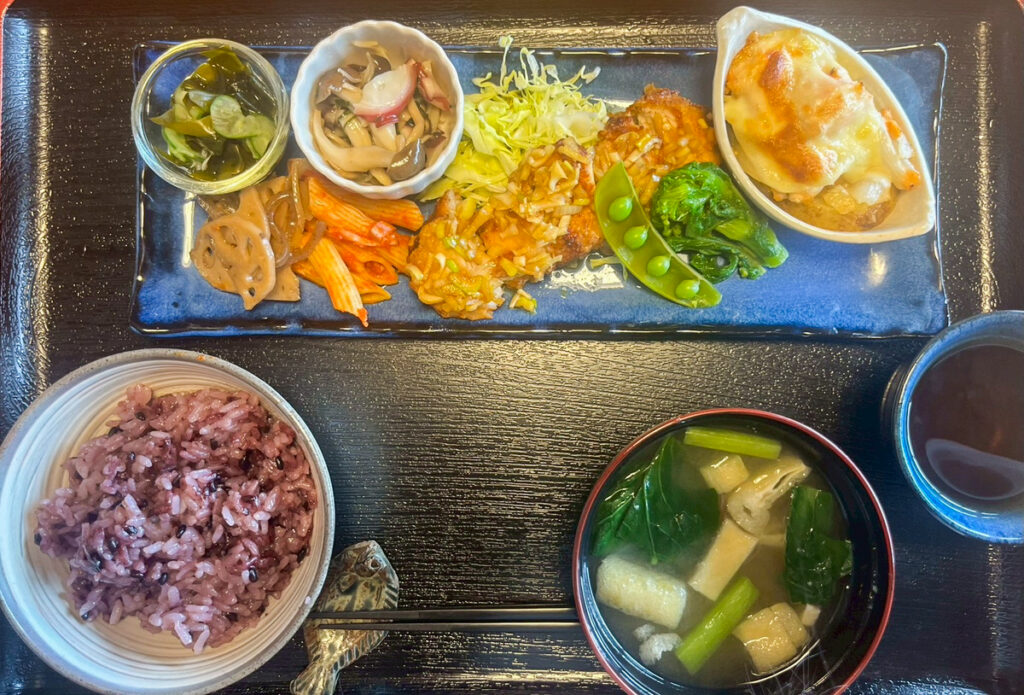 今回はランチをいただいたのですが、彩り豊かな小鉢がたくさん並んでいて、いろいろな味を少しずつ楽しめるのが嬉しいポイント。体にやさしい味付けで、どれも食べやすくておいしかったです♩