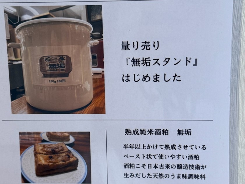 鳥取市青谷町の酒蔵「山根酒造場」で造られている「熟成純米酒粕 無垢」を使用したメニューをお店で出すこともあるそうです。