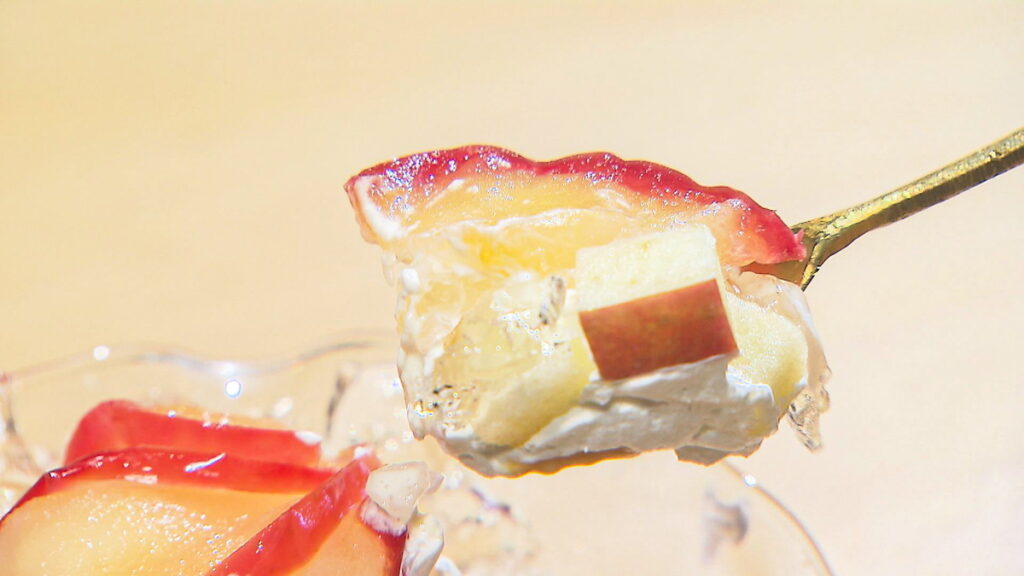 りんごの丸っこい可愛さを、りんごのコンポートで表現しているんだそう。