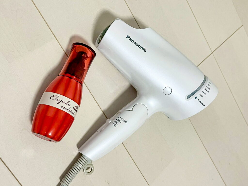 全部温風で乾かした時と比べると髪のパサつき具合が全然違うので、是非やってみてください。