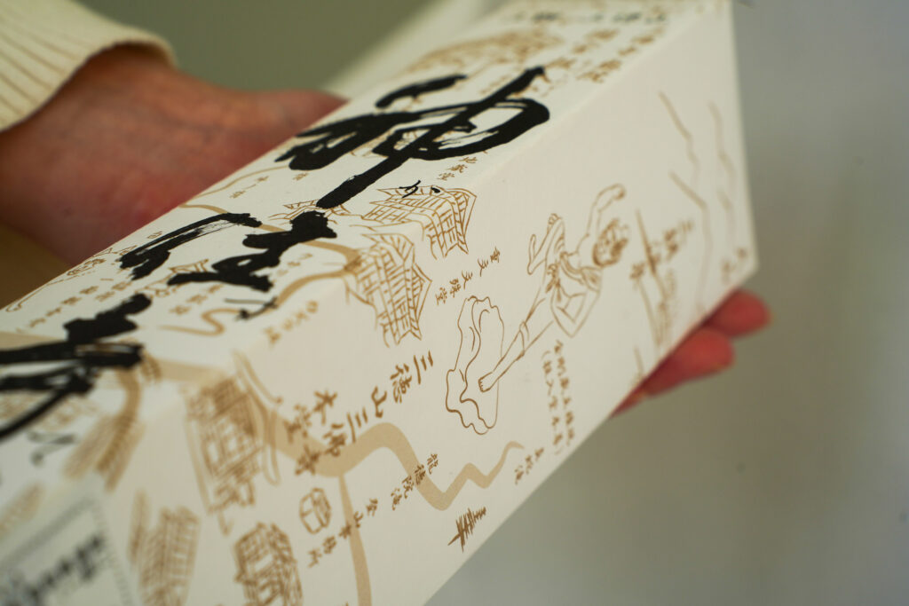 包装紙には、奉書紙(ほうしょし)というお布施や大切な書類を包むための高級和紙が使われており「神住寺」の文字は三佛寺の住職による直筆。