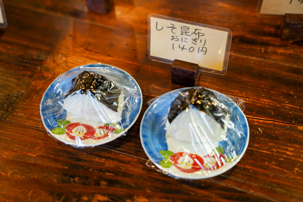 店内中央には、おいなりさんやおむすびなどのサイドメニューも並んでいます。