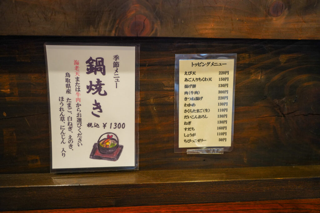 季節限定メニューもあり、取材に訪れたときは鍋焼きうどんがありました。
