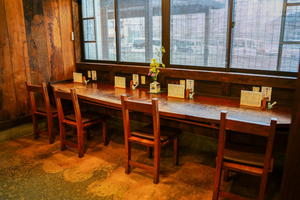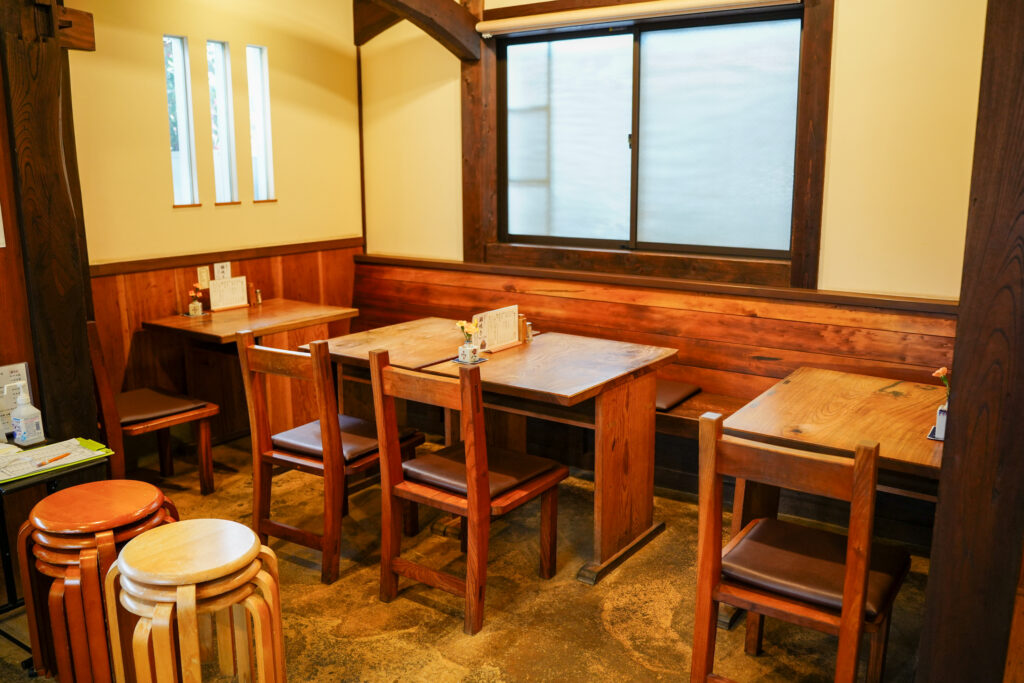 古民家の建物で、店内には古材がふんだんに使われています
