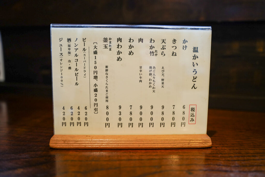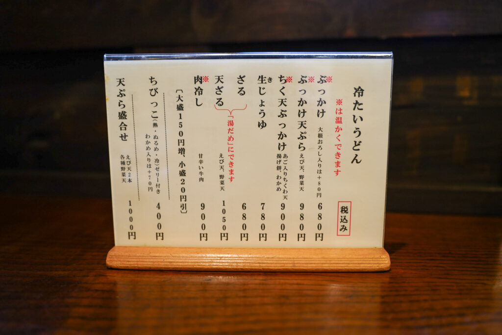 うどんは、冷たいうどんメニュー温かいうどんメニューがあります。