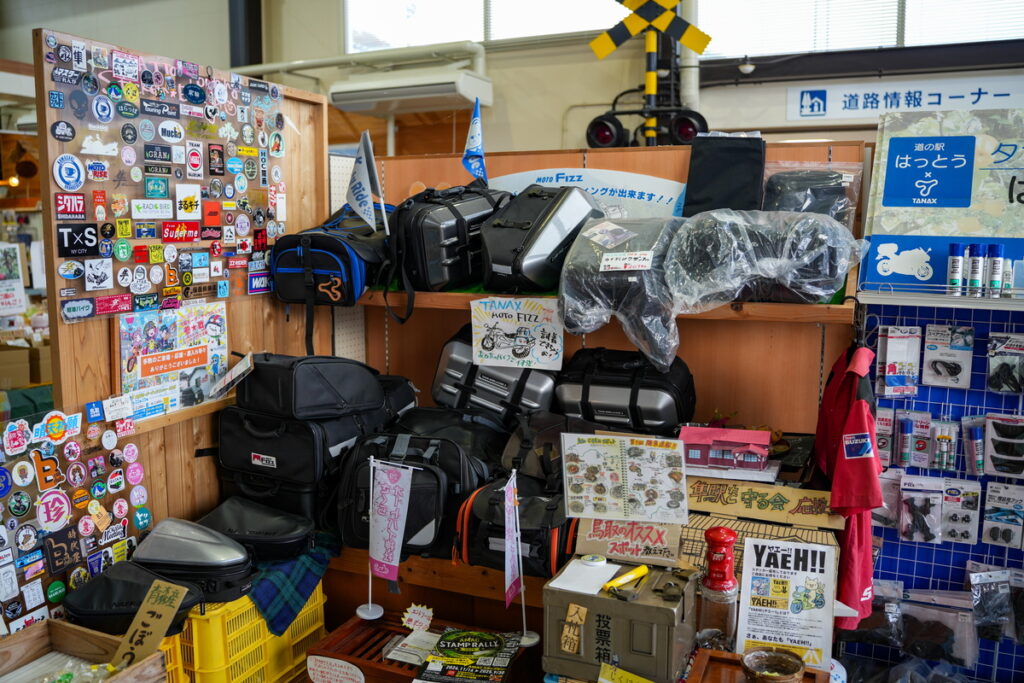 その隼駅に近い道の駅ということで、「道の駅はっとう」に、もっとライダーに来てもらえるきっかけ作りとしてバイク用品のコーナーを作ったそうです。