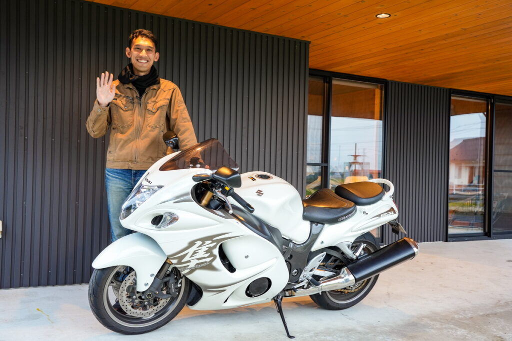 実は山村さんは、スズキのバイク「ハヤブサ」に乗るライダー!