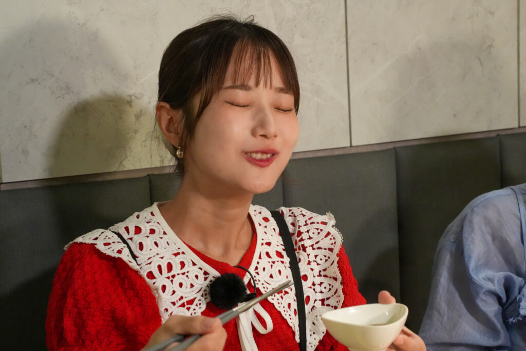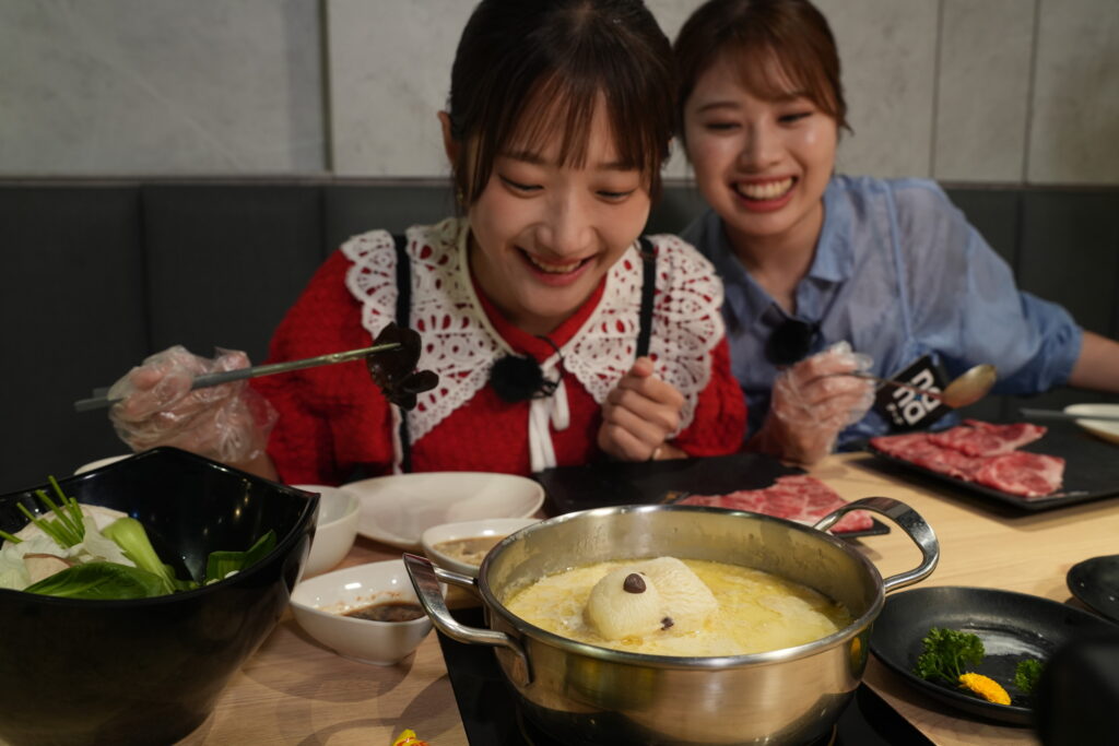旅の中でも火鍋を一番楽しみにしていたというりさちゃん、大きなお肉を口に入れた瞬間…とっても幸せそうな表情!