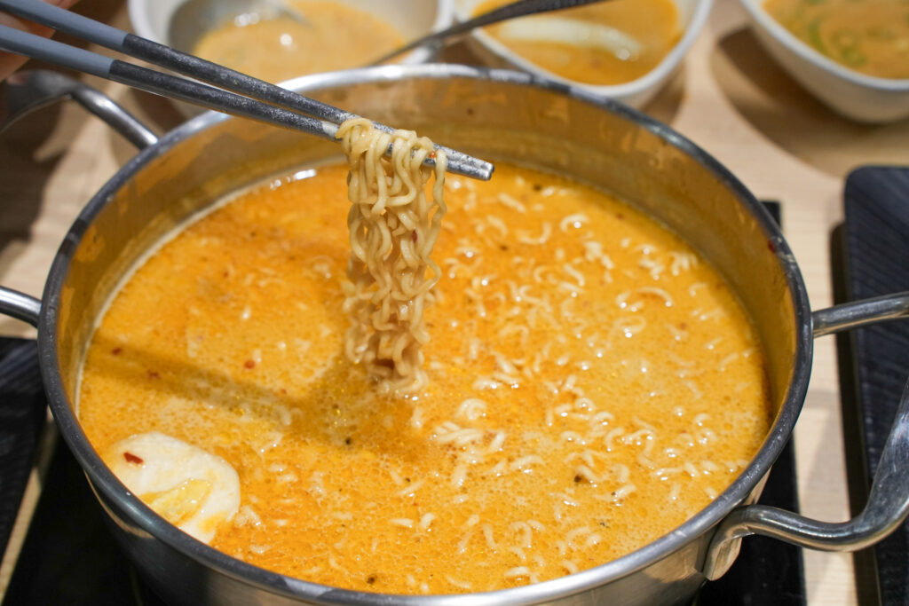 火鍋の締めには、台湾で定番の即席袋麺「王子麺」を投入。