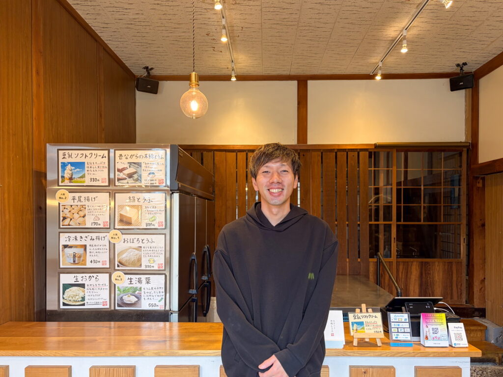 二代目店主の平尾隆久(ひらお たかひさ)さんです。会社員を辞めて、祖父母の豆腐屋さんを継いだそうです。
