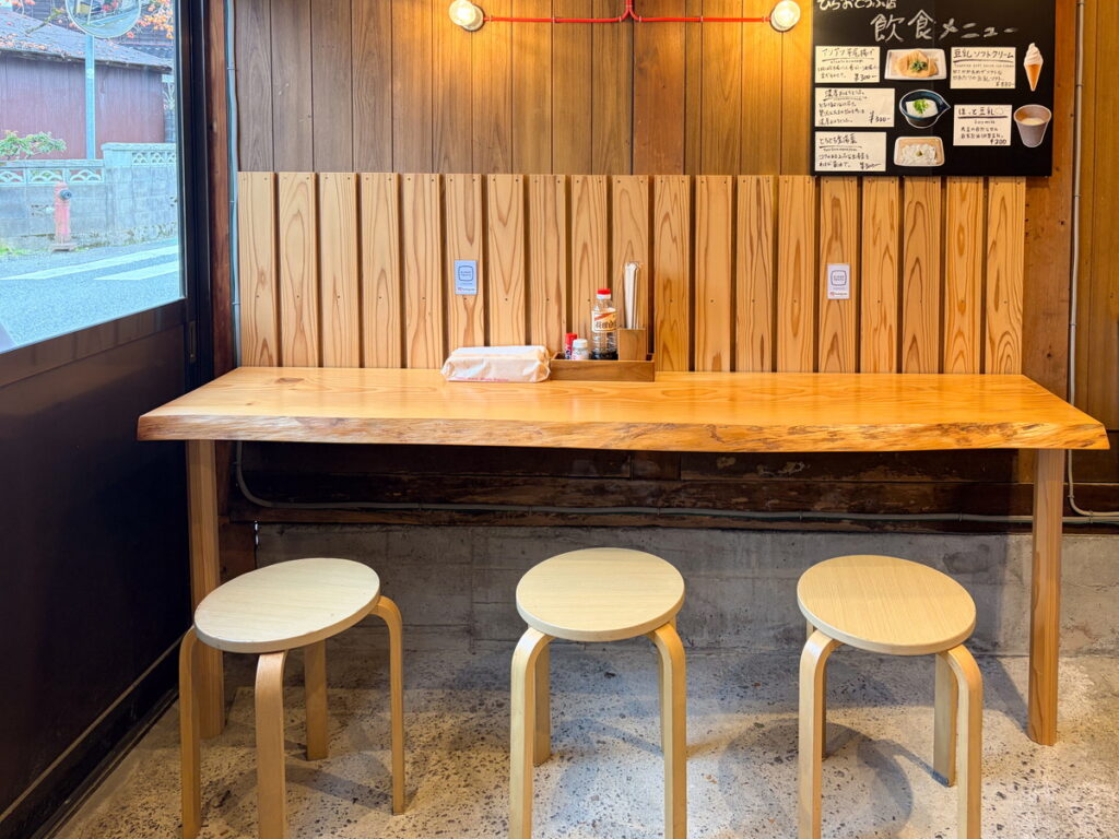 現在は店内に3席のイートインスペースがあります。