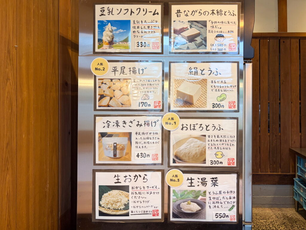 平尾とうふ店で食べた商品は人のこころのぬくもりが込められているようでした。
