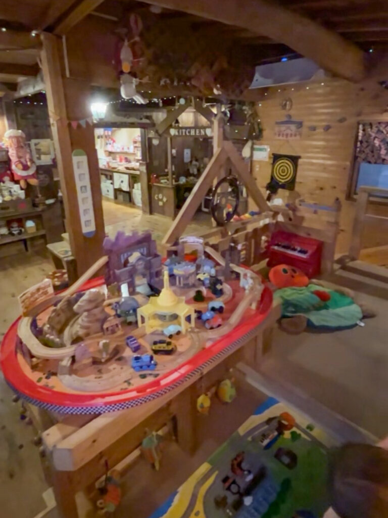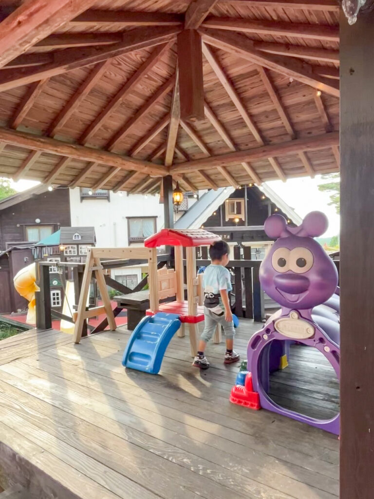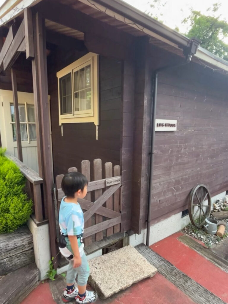 こちらの一棟貸のログハウスには、2段ベッドにすべり台やキッチンセットがついていたり、ミニカーやボードゲームもあって、まるでおもちゃ箱みたいなお部屋に子供達は目がキラキラです。
