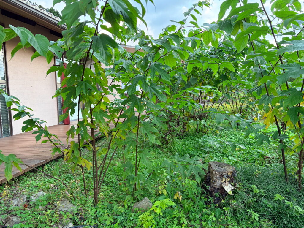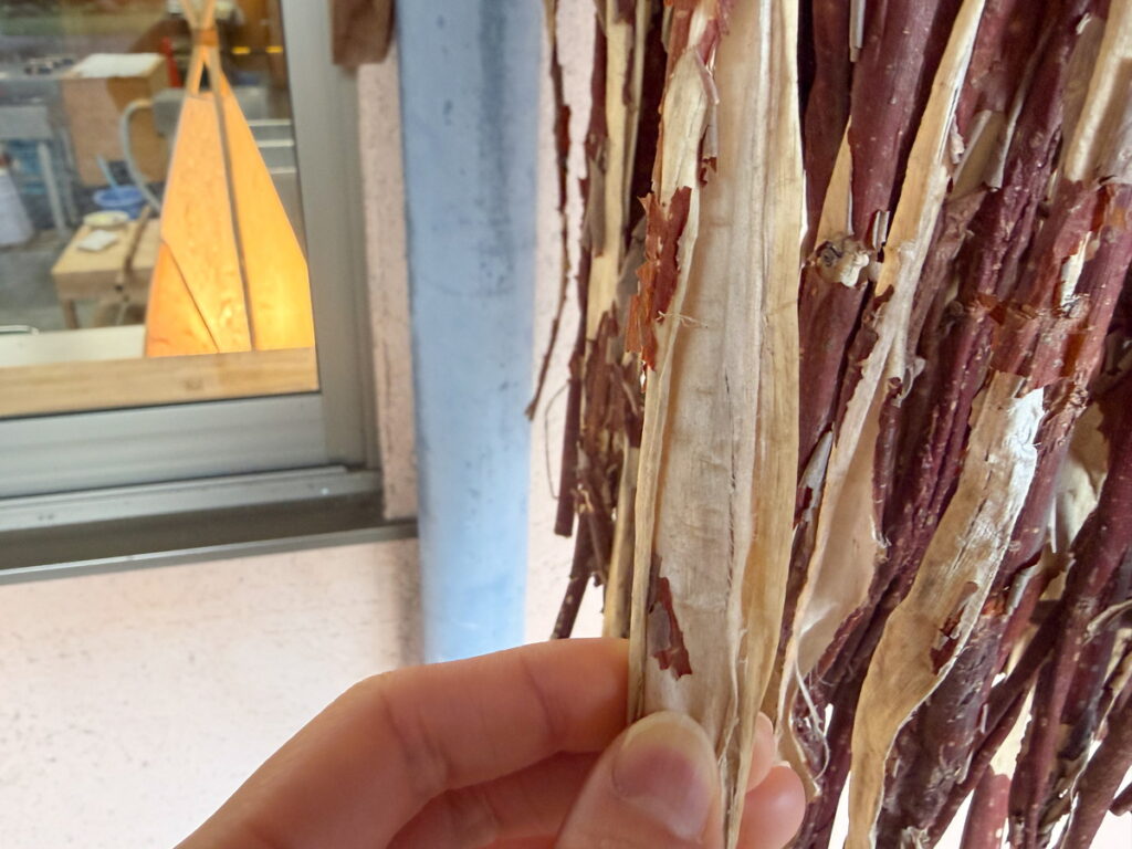 工房の外にあった和紙の原料の一つである楮(こうぞ)です。「これが本当に紙になるの?」と心の中で疑問に思いました。