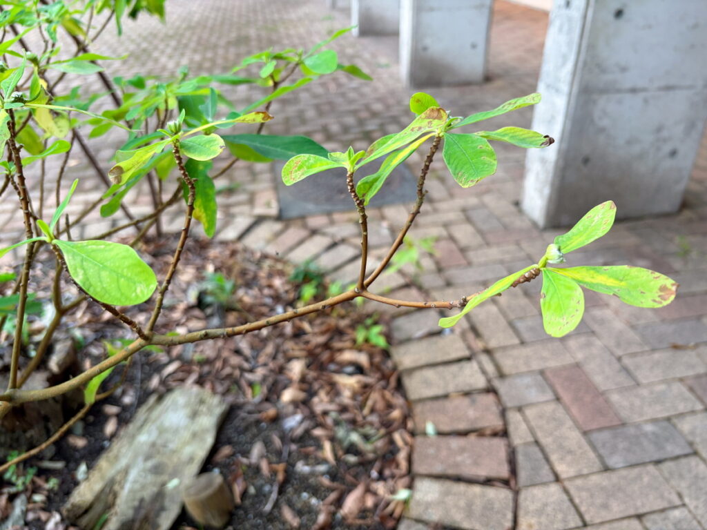 こちらも紙の原料の一つの三椏(みつまた)です。一本の枝が3つに分かれて伸びていくことが由来です。