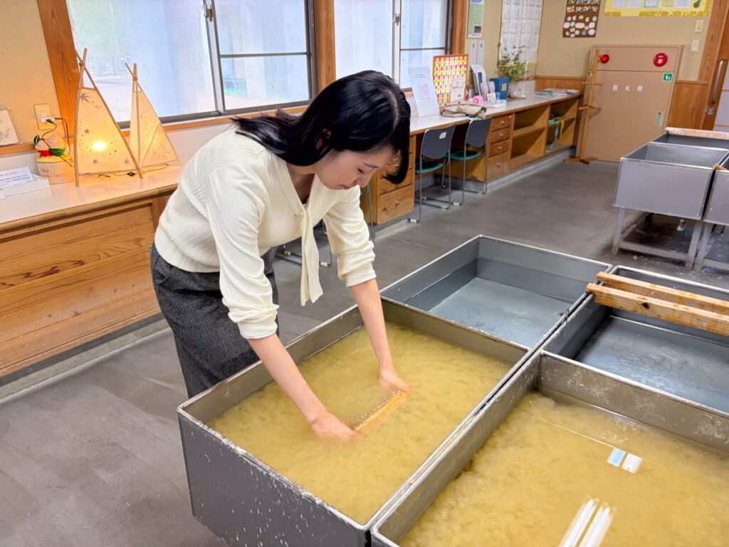 そして私・しばちゃんは紙漉きを体験!実際に手で触るからこそ分かる良さがありました。