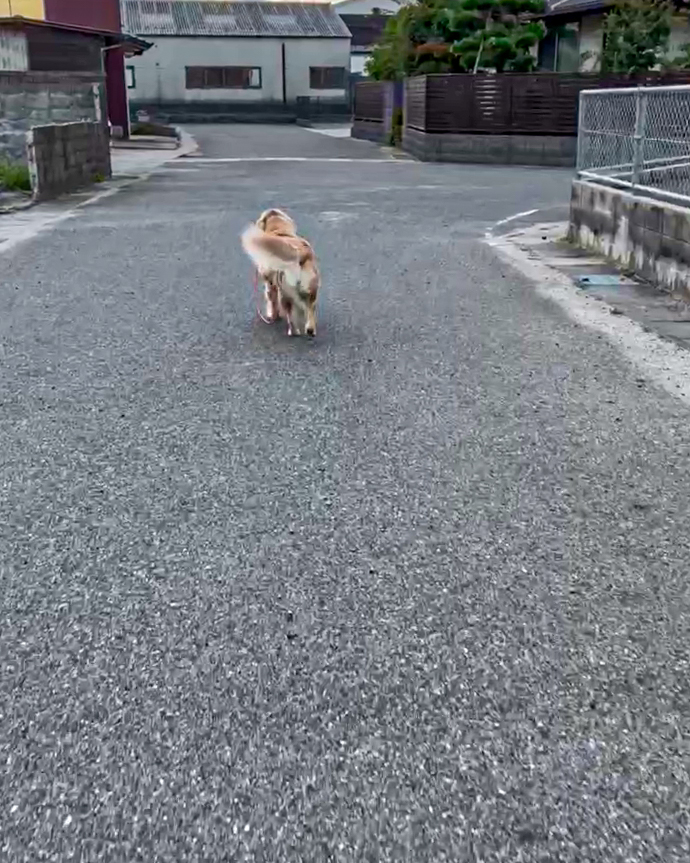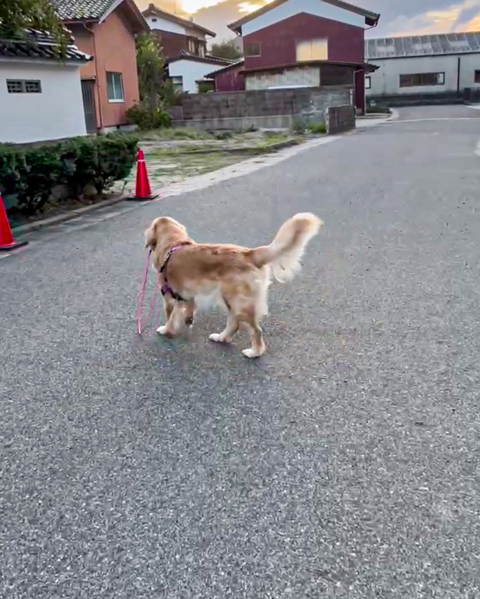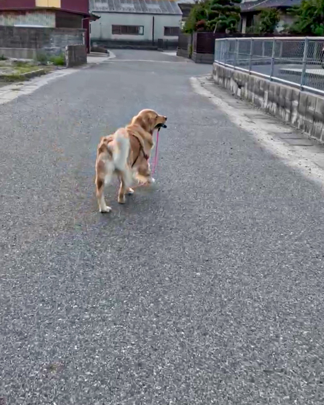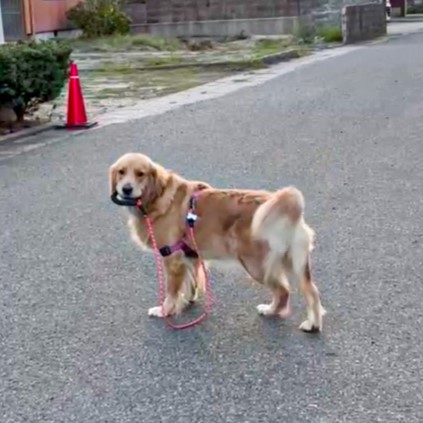 お散歩に飽きたら、自分でリードを咥えてお家に帰って行ってしまうのだそう。