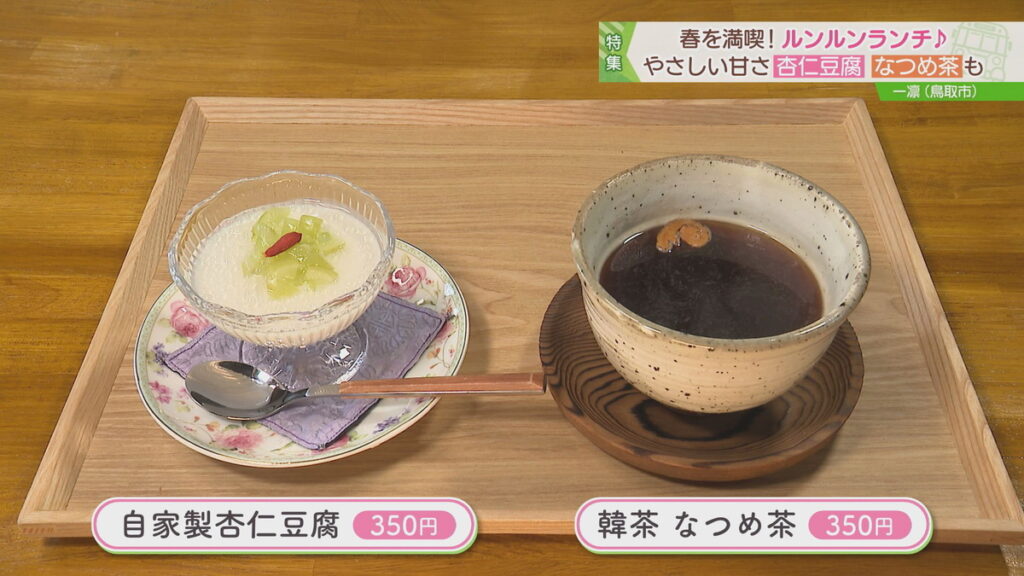自家製杏仁豆腐(350円)、韓国なつめ茶(350円)