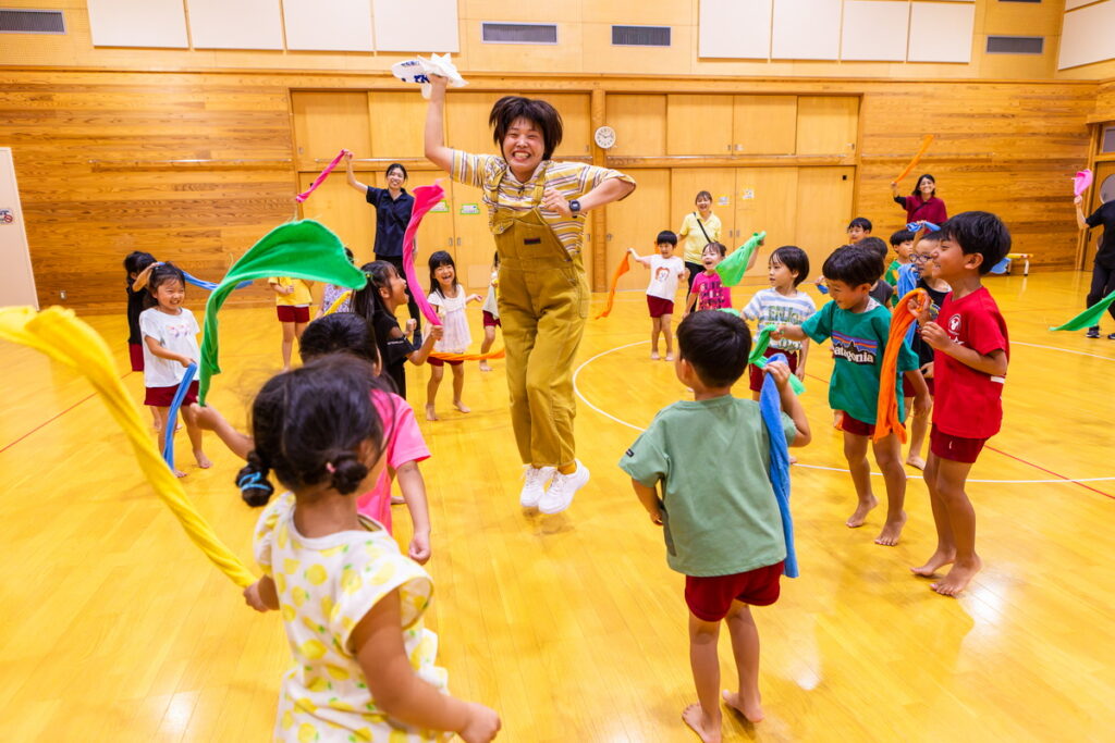 子どもたちの元気な姿を見てテンションがあがったまひるは、子どもたち以上に大ハッスル!
