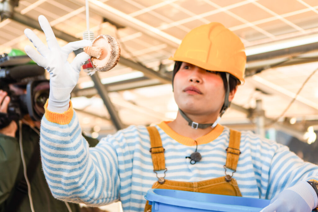 6200枚もの太陽光パネルの下で育てられたしいたけは、肉厚でジューシー!