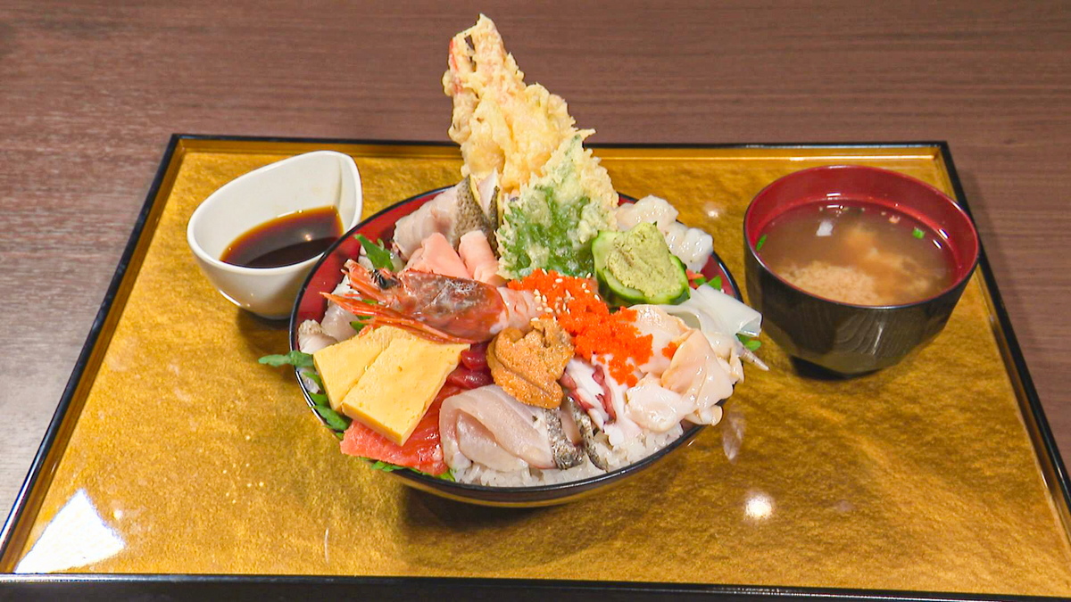 道の駅にある鮮魚店直営レストランで味わう贅沢海鮮丼。新鮮な海鮮に、プリプリのエビ天が絶品!|琴浦町