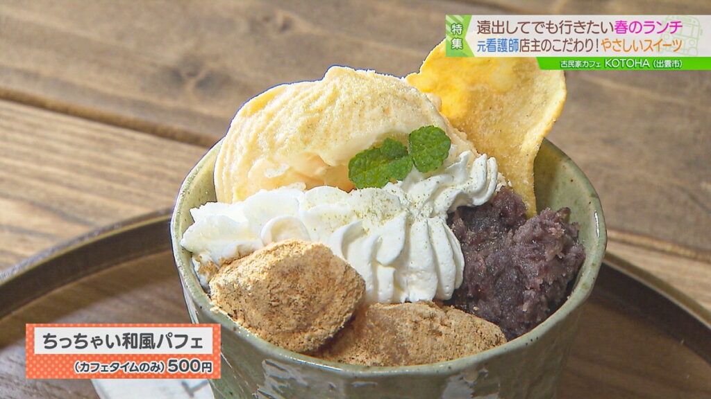 こちらも優しい味わい。できるだけ和のものを使い、器から味わい、体へのやさしさにも気を配った、こだわりのパフェです。