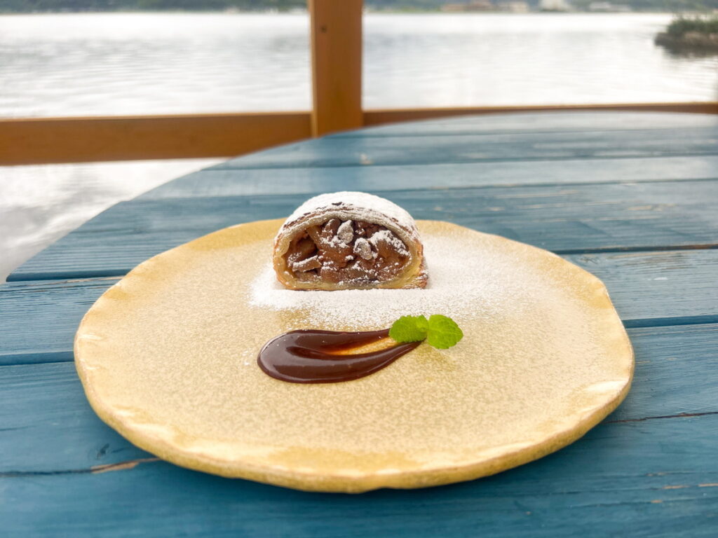 湖の真ん中に浮かんでいるような感覚になるテラス席です。ここには白鳥が住んでいるそうなので運が良ければ会えるかも・・・?